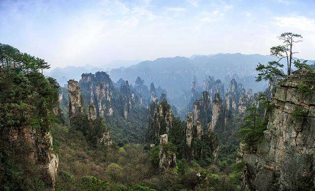 在袁家界,不需要多好的拍摄技巧,只需拿着相机,从任何角度,随便一拍,就能拍到一张很美的风景画。