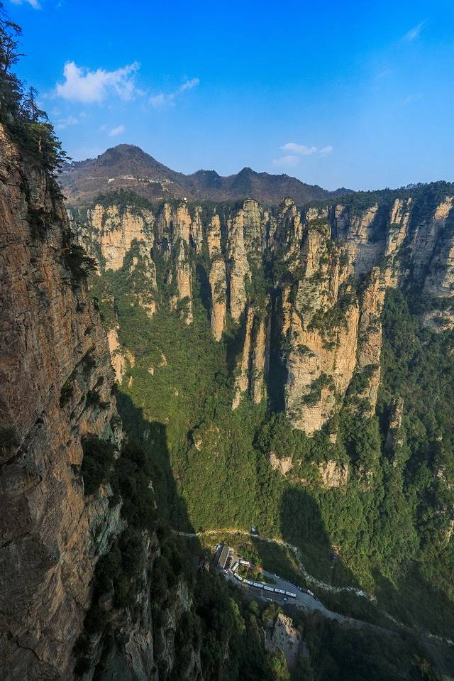 在天然长城拍了几张照片之后就去了乌龙寨,乌龙寨是杨家界的重要景点之一,原名叫“黑龙寨”,以前是土匪居住的地方,地处偏远、关隘险绝,四面悬崖,地势险要,仅有一条道路上下。