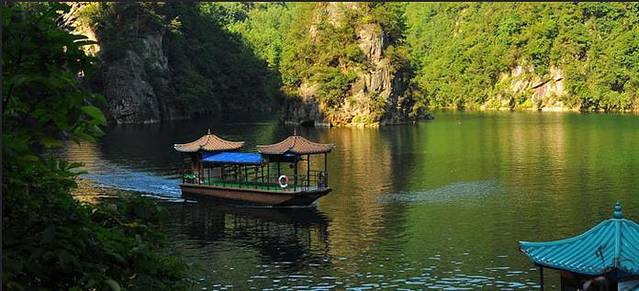 进去以后坐船游玩(坐船不另收费用),里面湖水非常清澈,山水相映,就像游走在画中一般。