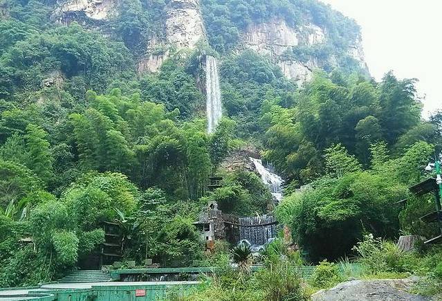 奇峰飞瀑,有很多绿绿葱葱的竹子,1998年《西游记》里花果山、水帘洞的外景地就在这里