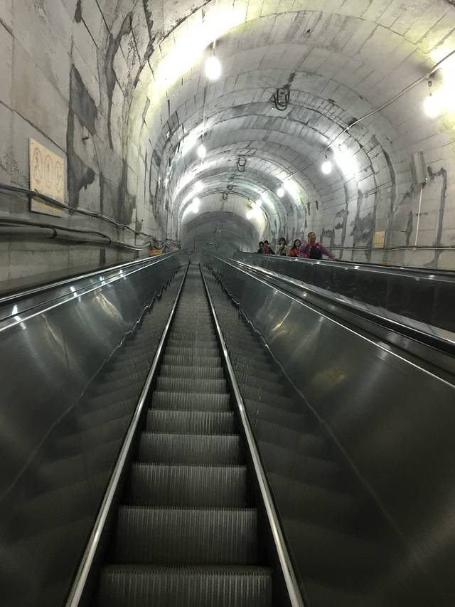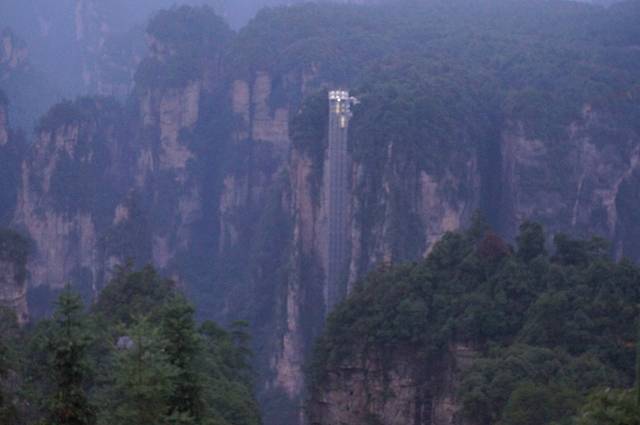 从天门洞到天门山顶需要乘坐穿山电梯,刷门票就可以了,免费,看见这个感觉人类智慧的结晶,至少有20分钟的电梯穿山建成的