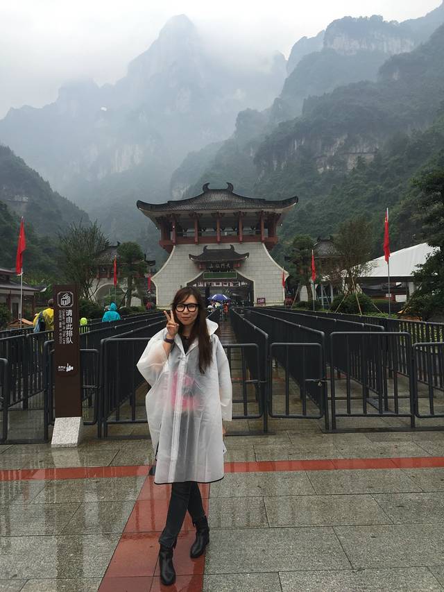 这天张家界小雨,临行前准备的雨衣还是有比较的,张家界是一个随时都是下雨的地方,所以这几天雨衣一直在背包里,第一段环保车送到此处,然后检票坐第二段环保车,都是免费的。