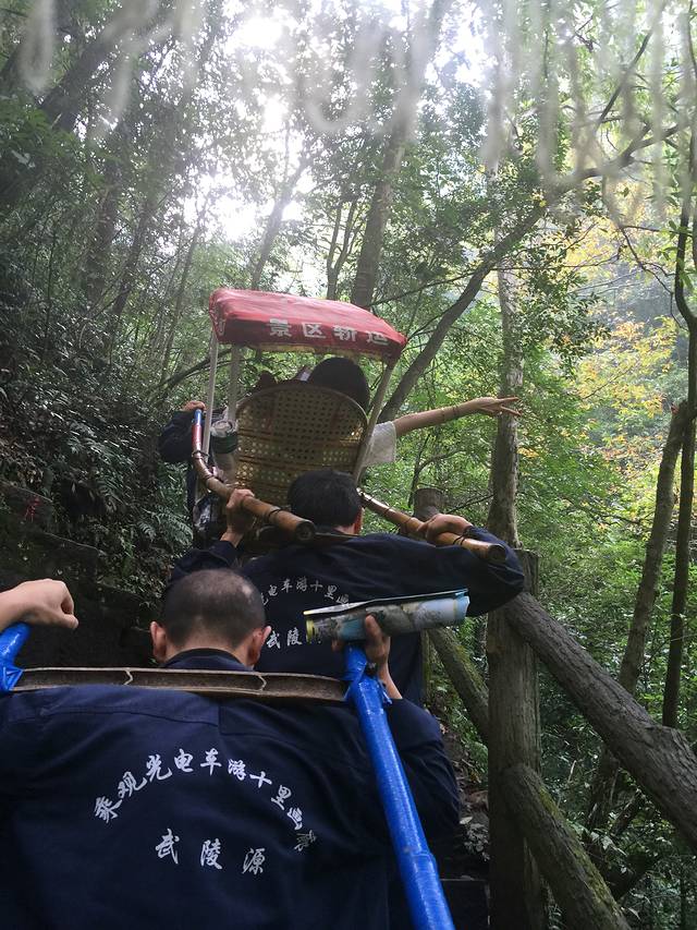 从十里画廊可以步行上天子山,但是据说要三小时以后,景区内有轿子,只要你一搭讪就会一直跟着你,开始报价200一个人,后来我们讲到300两个人,最终还是被骗,坐上轿子你以为是到山顶的价格,实际只是一段路的价格,全程抬完至少要1000以上,所以不是有老人和孩子,还是远离轿子好了