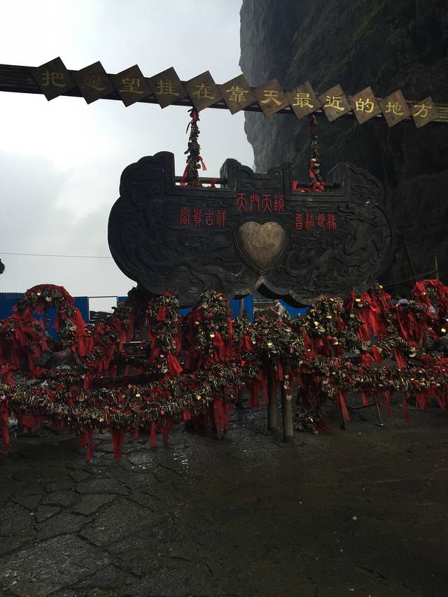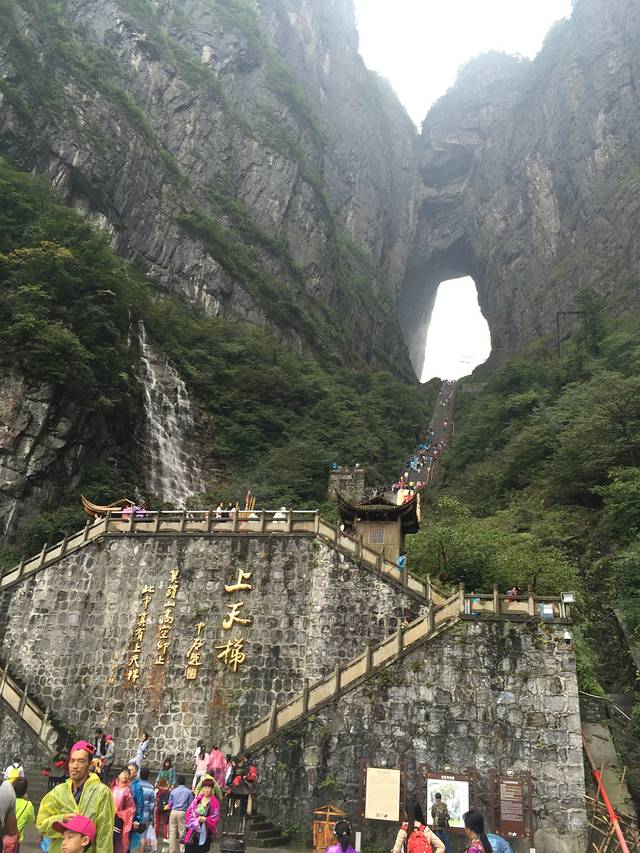 第二段环保车的终点站,此处是天门洞,体力好的可以选择步行上山,不愿爬山的也有电梯上天门洞,但是收费,具体多少钱没记住,但是天门山需要爬的路也只有这些而已,不是有老人孩子的基本都能爬的上去