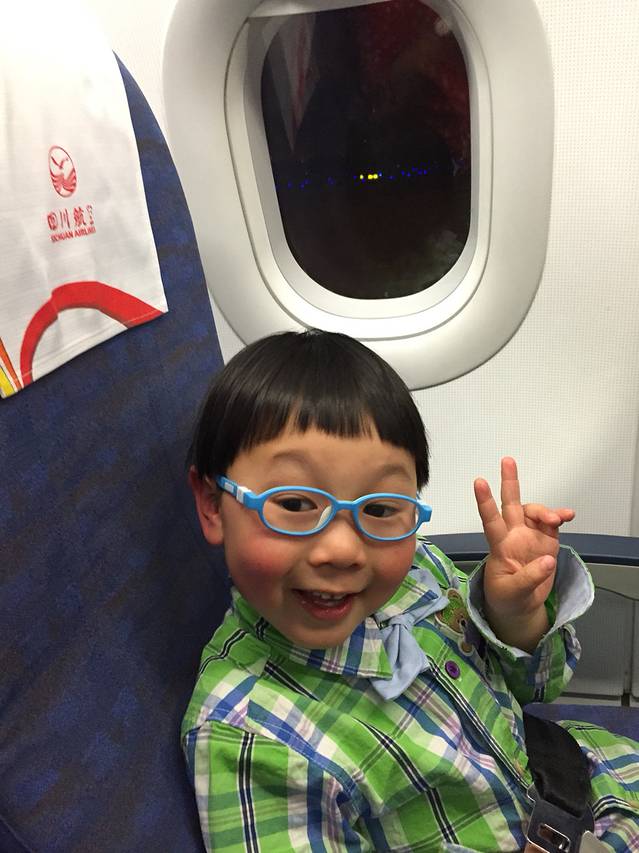 为了少请一天假,选择了晚上飞机,下班回家吃了顿简单晚餐,坐上地铁赶往飞机场,飞机晚点一个小时,直到11点40才登机,好在儿子上了飞机就睡着,宝贝太困了