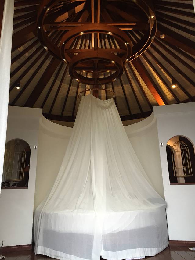 办理完入住手续,寄存行李就可游山了,一路都有电瓶年,因为下午才到亚龙湾热带森林公园(后简称鸟巢),山顶公园这时是人聚集最多的地方,所以可以顺着先玩兰花谷然后是锁桥,电话联系酒店接车回房。到房间先检查门窗是否关好,因为山里毕竟小昆虫比较多。整理行李就可选择泰餐厅就餐了,室外餐位风景好,但风大时吹着凉凉的,室内虽没室外自然景,但可零距离听听歌,感觉也不错。时间不早回屋休息,好好感受林中木屋—孔雀房的甜美与浪漫之夜