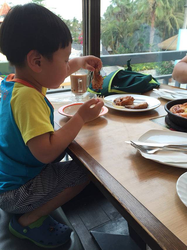 海边吃个早餐,就在沙滩边躺着,听着海浪声,看着孩子们在沙滩上开心的玩耍,无比舒心!下午陪儿子泳池游泳。晚上决定在酒店对面的万花谷解决下晚餐,那里吃的品种很多,网上可搜下。回酒店正好赶上草坪上有表演,看完回房休息了。