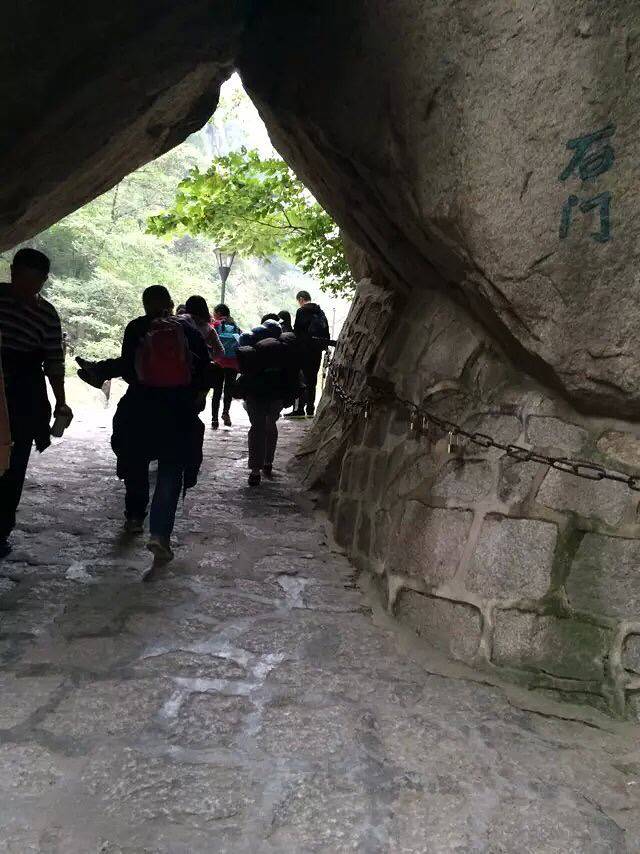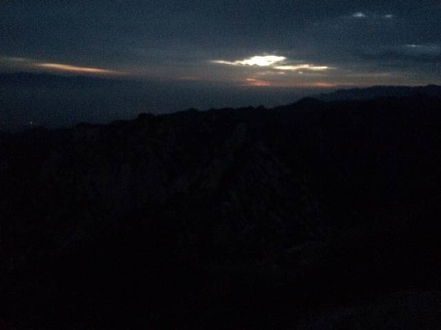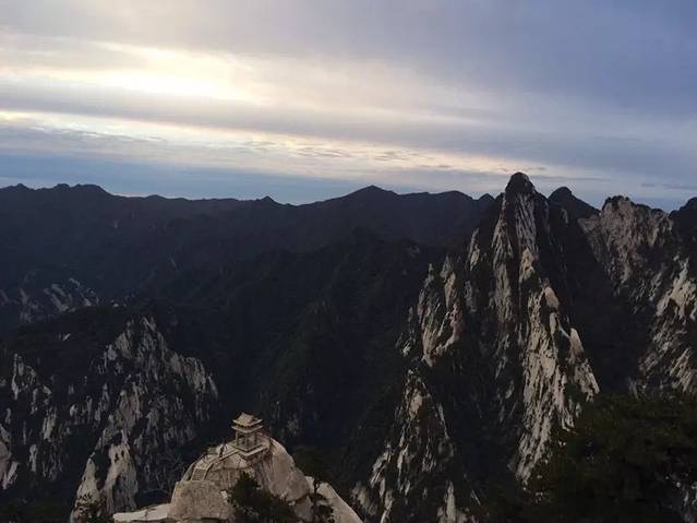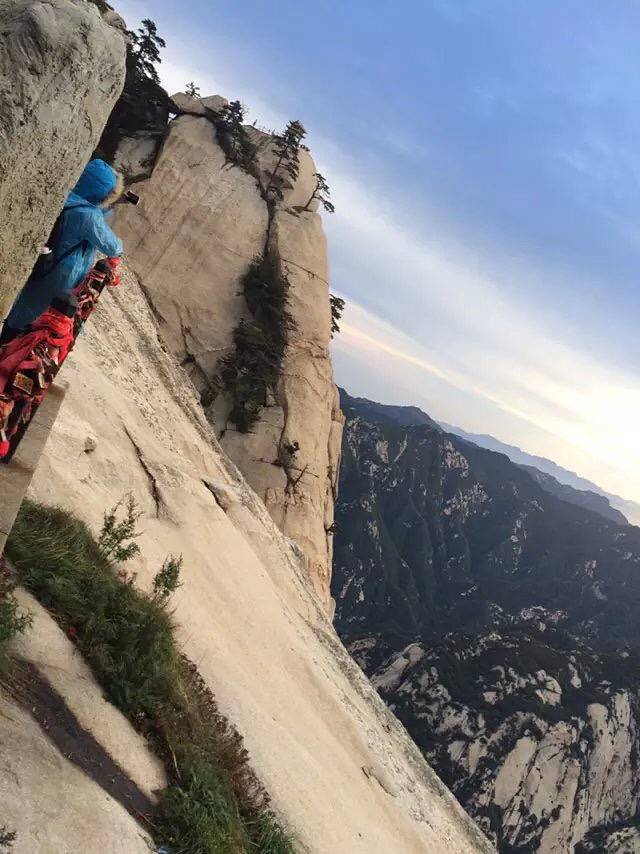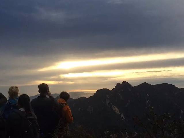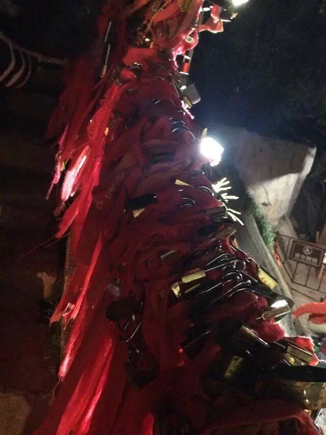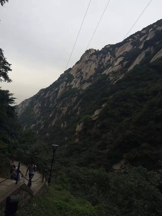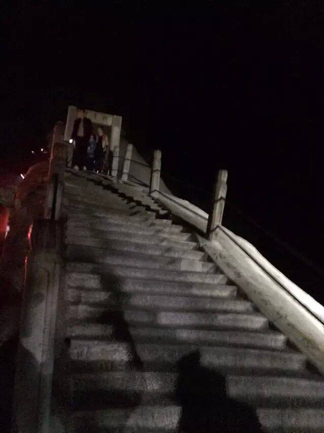 原本担心一个个会被五岳最险累的腰酸背痛,结果都像打了鸡血样的往上爬背的水也还有剩。温差很大,越到上面温度越低,晚上没有找到避风处,在外面打牌聊天吹凉风。准备凌晨继续启程看日出