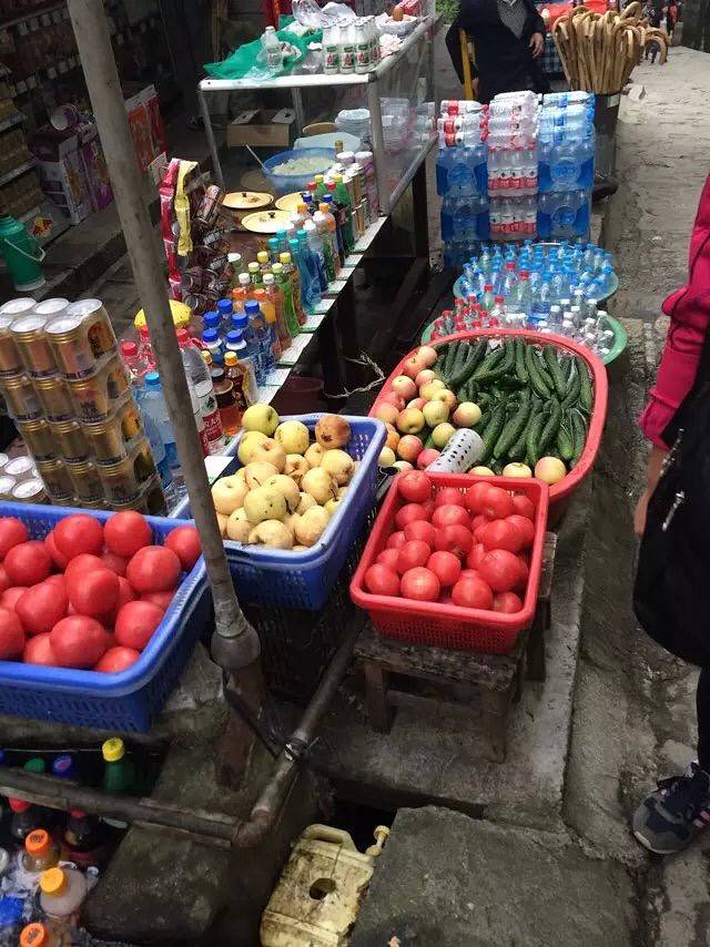 从下午两点多一直爬,途中有很多补给站可供休息,价格也还合理,水的话10块钱3瓶,水果饮料泡面凉皮什么的都有,还是蛮多的