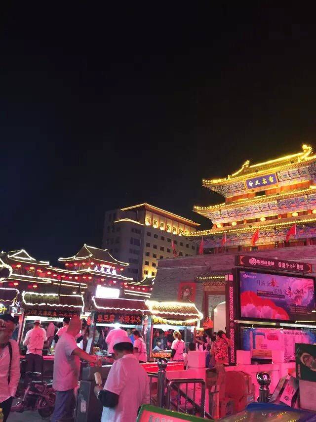 晚上开封鼓楼,小吃夜市一条街