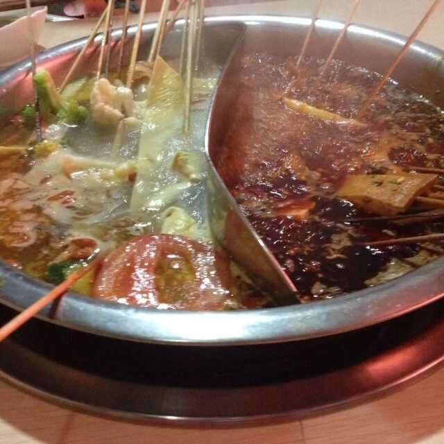 串串锅底,刚才辣晕了,这次点了鸳鸯锅,锅底25,串串自己去挑选。