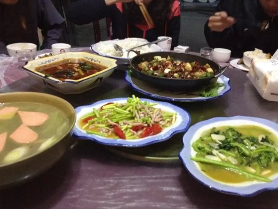 遵义的羊肉、成都的火锅、串串、川菜、甘肃的手抓羊肉、羊肉粉,青海吃了大盘鸡、孜然牛肉,在色达吃了酸奶、贵阳的青岩豆腐等