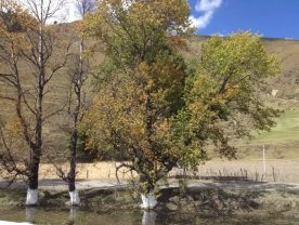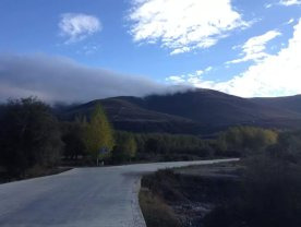 一晚没睡好,早早起床去吃早餐,餐后继续赶路,天气很好,从县城出来往新都桥方向走,一路上看到两旁的树叶有些黄了,我不知道那是什么树,长得很大一棵,清枫说那是杨树。走到一个小村庄时,突然眼前一亮,我们被眼前的美景惊住了,那山那水那树那天那云,都像一幅画一样,无须任何色彩渲染,应该是一个未正式运营的度假村吧,只看到一棵树上挂着度假村的牌子,以后正式运营以后就该收门票了吧。下车拍照久久不愿离去啊,早上9点多车子越来越多,就快占满了马路,眼看着要交通大堵塞了,快点撤离了,总想着等会还要路过新都桥,传说中摄影家的天堂,所以还是留点时间给新都桥吧。炉霍一直走都是二级公路,路况不错,两旁都种满了杨树,路过塔公草原,看到大草原上很多人在骑马,如果不是赶时间,我也好想停下车在草原上驰骋一会,阳光下的草原真是漂亮啊,这边的草地比若尔盖草原又绿一些。沿线的河流、草原、森林、山体、寺庙、藏房建筑都带着浓郁的藏乡风情。过了塔公草原继续向新都桥镇前进,时值中午了,太阳开始猛烈起来,阳光透过杨树投下星星点的光影,这道路看起来真舒服。中午12点半左右到达新都桥镇,一直以为新都桥有一个专门的景区,可是到了当地一问,当地人都说没有景区,只有一个在山上的观景台,新都桥是没有门票的,就一个镇子而已,网上所说的10元门票的所谓景区在哪当地人不知道,有些小失望,因为赶时间所以还是放弃了登山观景台了。下一站是康定,从新都桥走G318,路上遇到一些自行车骑行者,G318被称为中国最美公路,新都桥到康定县这一段318国道风景还是不错的,路况较好,出了康定,基本上就是围绕大渡河绕来绕去,路不算大,也就只能2辆车并排走,走了几小时还在河边绕,二郎山的路塌方了只能改道石棉,晚上8点多才到达石棉,石棉县城看起来比之前的几个县城都要繁华许多,虽说是晚上8点多了,可是石棉的温度却达到了23度,找家餐馆吃了一顿全牛宴火锅,一口热汤下肚整个人都感觉舒服了。经历了前几晚的找房的痛苦,我们决定晚饭后继续超路,晚上宿雅安。晚上9点多离开石棉,石棉到雅安的高速路发生了2起交通事故,天还下起了小雨,本来1个半小时就能到达的路程走了3个小时,半夜12点多才到了雅安,我们高估了雅安的接待能力,半夜在雅安找房子的人不少,依然是转了一圈,终于找到一家看起来不错的酒店,299一晚,毫不犹豫地选择入住,终于可以好好洗个热水澡,好好睡一觉了。
