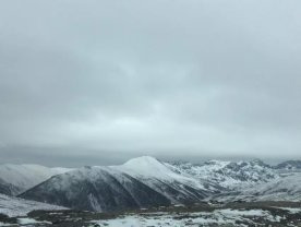 今天的任务还是赶路,打算晚上能赶到色达,离开班玛,路过久治黄河大桥,开始见到雪山,我们的摄影师小强是第一次看到雪山,初见那一点点雪山时兴奋得停车拍照,可是越往西走却发现雪山是越来越多,从小小一层的覆盖到大面积的覆盖,最后是满山覆盖,全部人都兴奋得不行,雪山加上那些悠闲吃草的牛、样、木屋,组成了一幅漂亮的雪景图,这一路真是走走停停,路过雪山、路过草地、路过黄河、各种各色的不知名的小花,真是美翻了,本以为今天除了在车上赶路不会有景可拍了,可是一路上都是景,每到一个新的海拔高度,都会有牌子指示,今天路过的最高海拔高度达到了4398米,一直以为我能承受的最大极限是4000米,原来我可以承受更高海拔的。今天一天基本都在雪山里走着,一路往上都是盘山公路,到了下午5点多钟到达玛曲县城,正好到晚饭时间,终于可以准点吃饭了,小小的县城,餐馆都没卫生间,公厕都没有,要解决问题都是直接到县政府办公楼的卫生间解决,虽然是国庆假期,但是政府办公室还有人上班,看到我们在楼梯口站着,还热情指示卫生间的方向,本来还很担心,结果真出人意料!今天一路高海拔走来,同伴的几人有高原反应,天色也渐黑了,按百度地图到色达的路还有很长一段山路要走,安全起见,最后还是决定在玛曲住一晚,第二天一早再赶路,又是头痛地找住的地方,玛曲比班玛还要小,就一条街道,住宿稍好的酒店是指望不上了,找了好几家小酒店小客栈都是爆满啊,最奇怪的是,这里的客栈都是没有独立卫浴的,是因为这里长年缺水导致这种格局吗?转了大半天,把县城都转完了,问了一家又一家,都是满的,最后在一个小小的巷子里找到一间未满的,但是只有公共卫生间,连公共浴室都没有啊,天黑了又下雨,那个冷啊,房间只有3间了,我们7人只能分开住,住宿环境越来越差了呀,心塞啊!!
