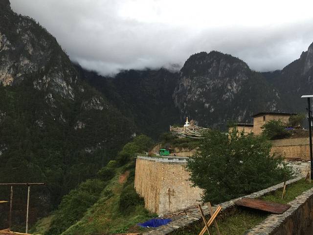 前方峡谷深处就是 我们今晚要入住的地方哦,导游说很牛逼很神奇的地方!两边几乎90度垂直的峭壁下盖得房子