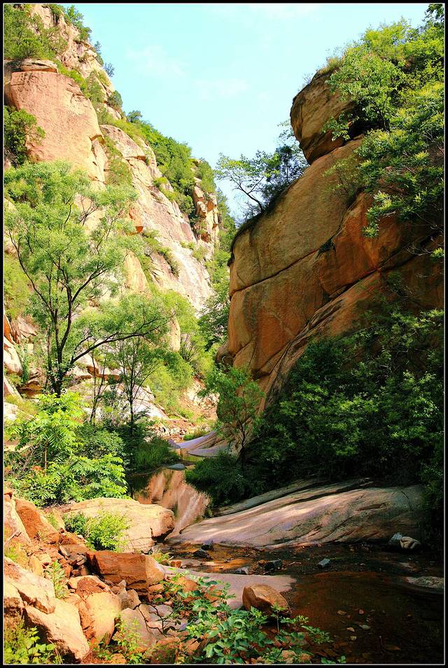 龙潭涧风景。两山夹溪水延绵五里地,山泉起伏处跳跃如珠,游鱼隐现,尽头处就是京北第一漂源头。