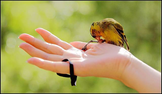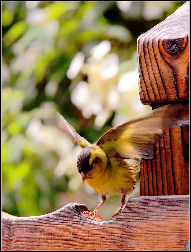 黄雀胆小,似乎没有多少野性,在院子里也只是小范围溜达,飞翔不过三五米的行程,我每天遛鸟如同溜狗,基本都是地面上的事。