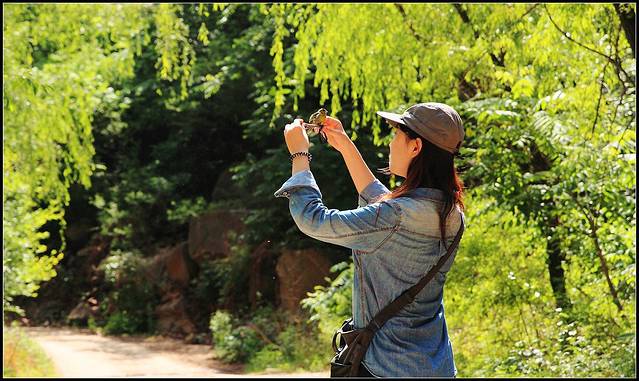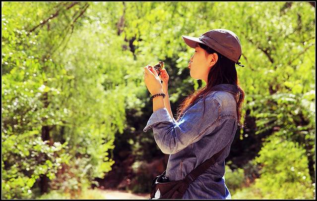 携女架雀驱车百里怀柔龙潭涧景区,这里沟壑纵横绿植茂密,溪水潺潺。。。黄雀行为激动展翅频繁,复杂地形处只好给它戴上脚链以防迷失山野。