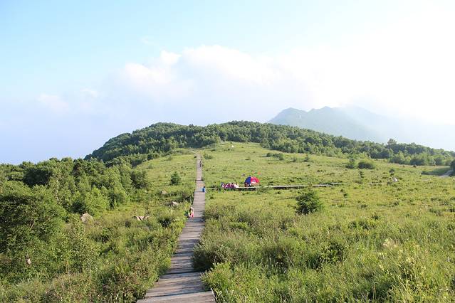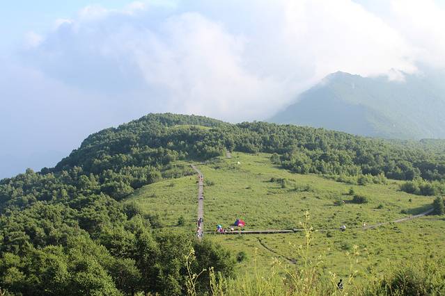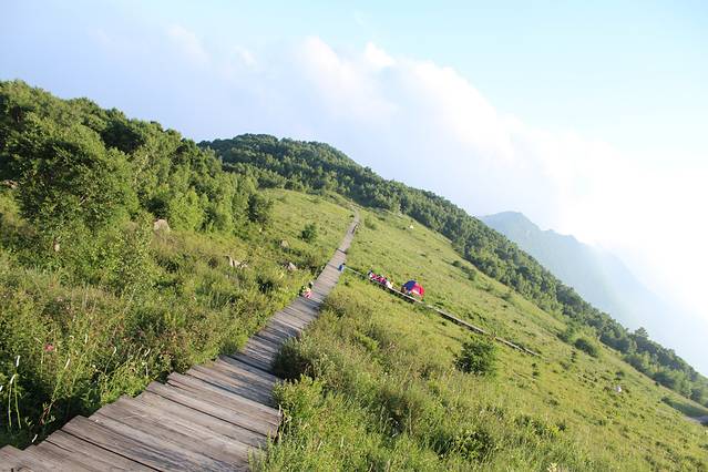 从停车场往草甸走就是沿着这山脊一直往前走,不知道翻过了多少个山顶就到了草甸,看到草甸的那一刻心情一下子豁然开朗,感觉非常好