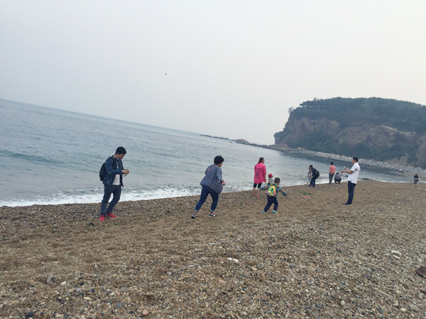 出了码头在车站遇到环城旅游巴士,10块钱一位,可以看完一个景点持票继续坐巴士到下一个景点,全天有效,这个超值。看了一下站牌,最近的是棒槌岛,我们就朝棒槌岛出发了。棒槌岛门票20元一位,电瓶车10块钱一位。从大门走到沙滩也就20分钟,我们决定边走边赏景了,虽然都是人工的,但是满眼的绿色,还有好多拍婚纱照的情侣,一路心情还是挺舒畅的。到了海边,海滩全是鹅卵石,没有细沙,俩大孩子和一小屁孩坐了游艇环岛一圈,然后就是拍照坐着看海景,这个季节下不了水,但儿子还是很兴奋,一直在扔石头。