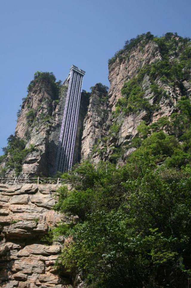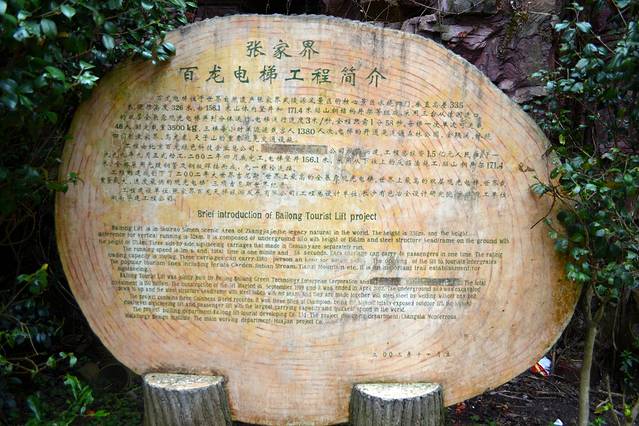 这个百龙天梯是载入吉尼斯世界纪录的最高户外电梯,我们早就想来试试,买了往返票(学生票往返¥86,原价往返¥144),直接走的VIP通道没排队,天梯速度果然很快,从里面看外面的景色也很美,一分多钟就把我们送上山了。