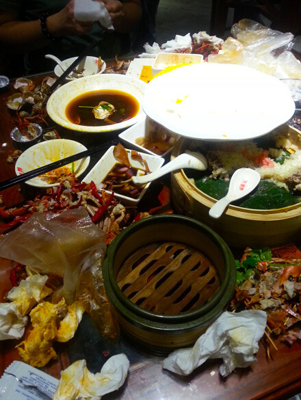 出了酒店坐301路公交一站地就到坡子街了,坡子街的火宫殿非常有名,我们两人去了要了一大堆,吃的杯盘狼藉。。推荐臭豆腐,外脆里嫩,不推荐香辣蟹,里面没什么肉,味道也一般般。