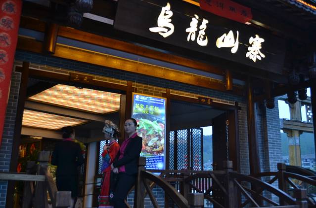 今天走了不少路,我们早就饿的不行不行了,在离宾馆不远的一家叫做乌龙山寨的饭店吃了一顿美美的当地风味菜肴,吃完后出门就是溪步老街(武陵源城区的一个商业街,旅店、小商店、餐厅、酒吧都有),我们在那溜达了一圈后就早早回去睡觉了。