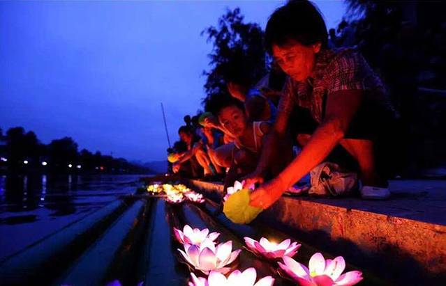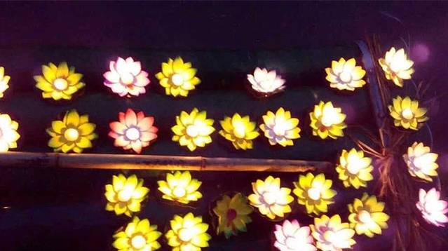 入夜,河面波光粼粼,当地人一起点亮千盏渔灯,祈祷美好愿望,唯美的千灯漂流在河道里,将美好带进每个人的心里。