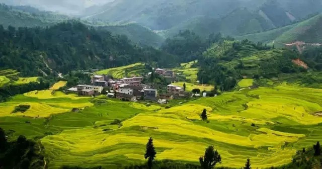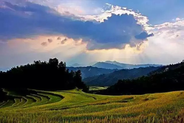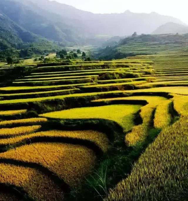 秋天阵阵的微风吹佛在稻田,一片金中带绿的稻田已经呈现在眼前。沉甸甸的稻穗在风中摇曳,千亩梯田,十步一景,美到让人如痴如醉。