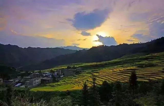 为避免国庆堵车,凌晨3点我们就从清远市出发,从清连高速连山出口到龙口大桥,走G323到太保镇,在走807乡道到欧家村,大约开了3个半小时,还真有点远。当看到日出徐徐升起,五彩的光透过云层照射着金中带绿的稻田,弯弯的田阶一层高过一层。美而广的视觉,觉得这一切都是值得的。