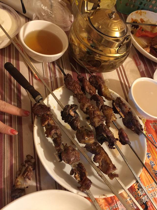 开八小时车从乌鲁木齐到克拉玛依再到布尔津住,在当地美食街品尝冰库鱼