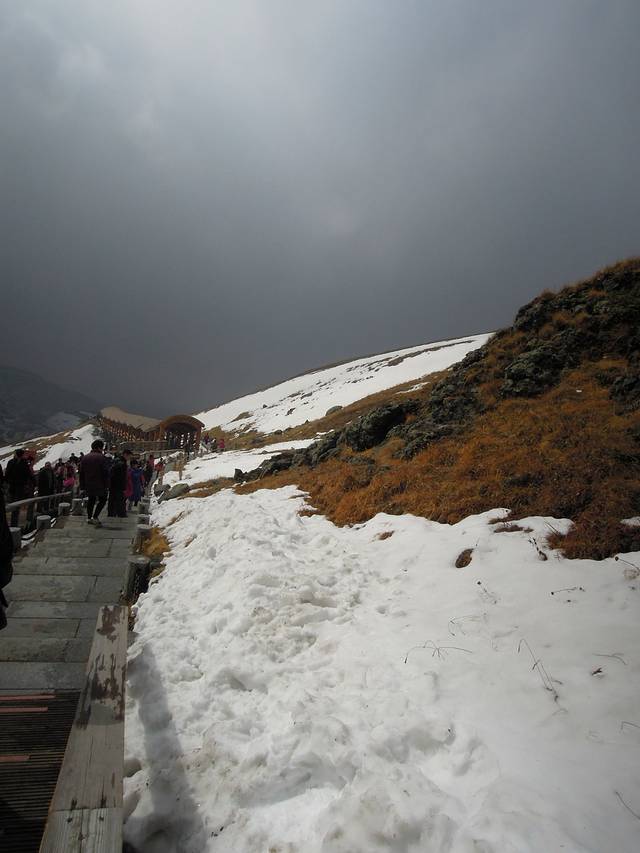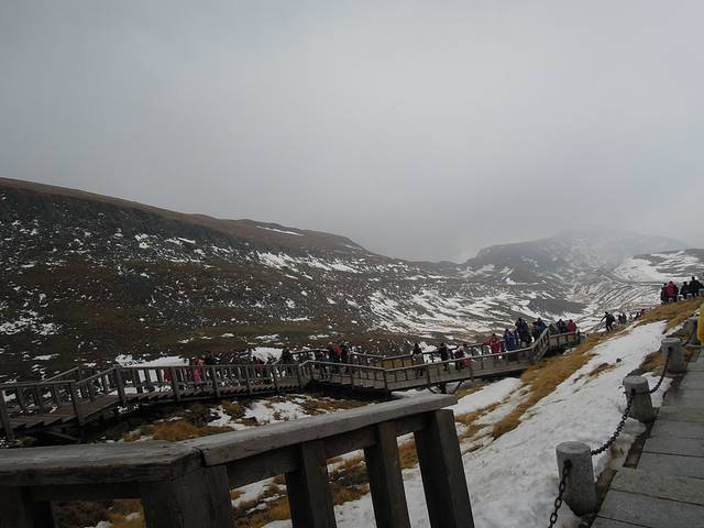 2015年10月5日下午乘坐K7511火车硬卧,从大连始发到松江河火车站,时长17小时33分左右。2015.10.6午夜十分,自己却突然醒了,完全没有了睡意。于是看到车窗外一片安静。行驶的K7511列车在梅河口突然停了,黑夜四周静悄悄的。于是拿起相机,拍了车窗外对面一列停靠的火车。一段漫长的旅途中,闭上双眼在脑海中会想象着长白山的美景,会不会亲眼看到天池,之前在网络和相关报道中看到天池的壮观,美的无法用语言去表达,然而要想看到天池,好的天气必不可少,当然也需要一点点运气。2015年10月6日早上7点多坐在火车可以欣赏窗外风景。在陌生的地域,感受不同景色。秋天时节。8点半在景区售票口买好四张门票,西坡景区门票125元和乘坐环保车票85元各两张,保险是一个人5元。老妈的表情很淡定,于是乘坐环保车,在车上广播介绍长白山西坡景点和它的由来。从西山门距离西坡登天池处42公里左右,沿途两侧植被保存完整。爬到西坡顶峰需要攀登1442层阶梯,每攀登一层就离顶峰近一些。 大约9点40多顺利到达西坡天池,看到中朝37号界碑。长白山一年有四季,十里各不同。看到人来人往,大家爬到天池,只为看一眼天池壮观场景。在不知不觉之中,时间来到11点半左右,在天池上面气温低,风大,感觉有些寒冷。令人遗憾没有看到天池。但是并不为此而感到失落,因为看到天池是需要一点点运气,在天气晴朗的条件下才可以看到天池,在西坡看天池一个椭圆性,与北坡可那天池有所不同。随后从天池下来,在寒冷的天气下,依然有很多的人往天池主峰攀登。到达停车场乘坐环保车前往长白山大峡谷,终于形势30分钟左右到达长白山大峡谷门口,兴高采烈的去看各种奇石怪状的石头。沿途各种绿色植被形状各异,很有特点。看到峡谷下面各种怪石,感叹大自然的鬼斧神工。 下午3点左右,游完长白山大峡谷,乘坐环保车到达景区门口。乘坐旅游快线,单程80里一人票价80元,大约1小时20分左右,顺利到达二道白河镇美人松园,对面就是金水鹤宾馆,很容易发现。晚上5点左右二道白河镇,人很少。车辆行驶在道路上,没有出现拥堵现象。