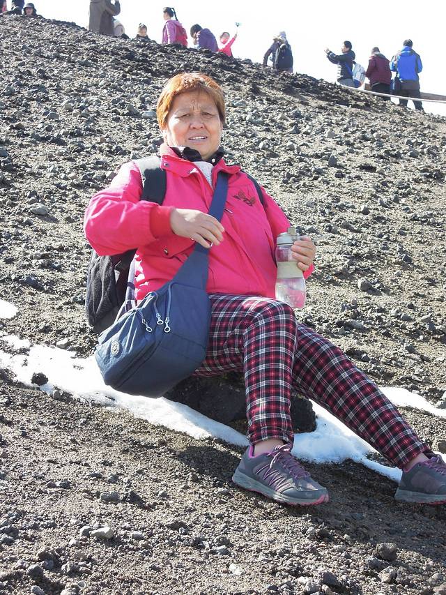 老妈很开心,笑容满面,来到长白山看天池,真是不虚此行。
