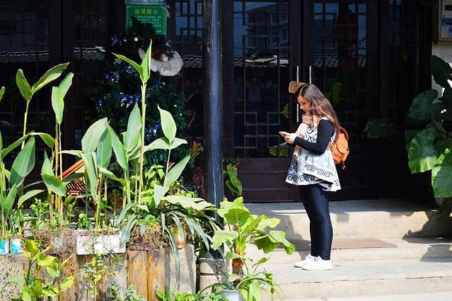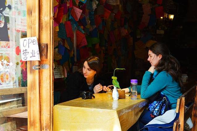 在老街行走时拍到的咖啡馆里的两位外国美女,看到大叔在偷拍,她们不仅没反感,反而给我报以微笑,多么友好啊!后来和同伴与她们交流得知她们是留学生,左边的是西班牙美女,右边的法国美女。