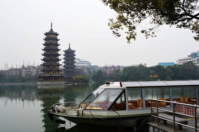 一江指“漓江”,船上欣赏桂林城徽——象鼻山,被称漓江的守护神——伏波山等桂林市内名山;四湖指“榕湖、杉湖、桂湖、木龙湖”。