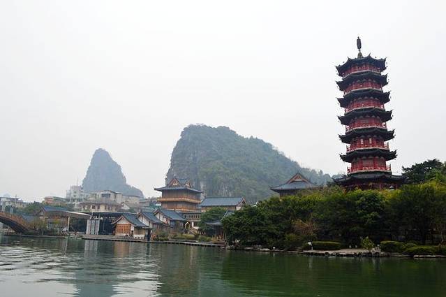 办理入住酒店后开始了今天的行程——船游“一江四湖”、刘三姐大观园、观看“梦幻漓江”。