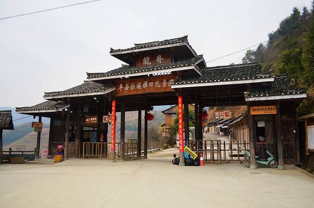 到达山下的景区游客中心,把一晚两天需要的衣物洗漱用品带好,其余的全部寄存在这里,因为大巴车只能开到平安壮族梯田观景区的广场那里,还有一段有些陡峭的山路需要步行。