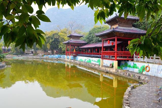 坐落在风景怡人的桃花江畔。刘三姐大观园是桂林市旅游业的一颗新星,她以刘三姐文化精华为主题,集观赏、娱乐为一体的休闲游乐场所。