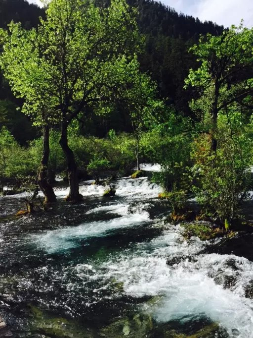 白天正式进入九寨沟后更是坚定自己进入了仙境,一幅幅美丽的画面觉得自己有些幻觉,工作时屏保上常常会找一些这样的图片,闲暇时盯着发呆,幻想着自己也可以置身其中,现在禁不住多拍几张回去做个真实的屏保。