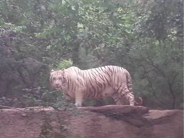 白虎是孟加拉虎的白化品种,以毛色为白色著名,性情比较温和,体态优美,被誉为“小姐”虎。直到现在,世界共有白虎约200只左右,