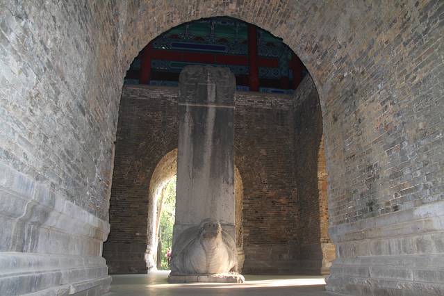 神功圣德碑及碑亭,是明成祖朱棣为朱元璋撰述的歌功颂德的,建筑平面为正方形,外观如一个城堡,故俗称 “四方城”。