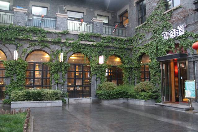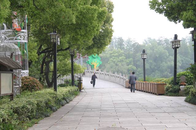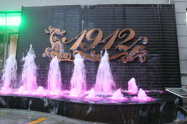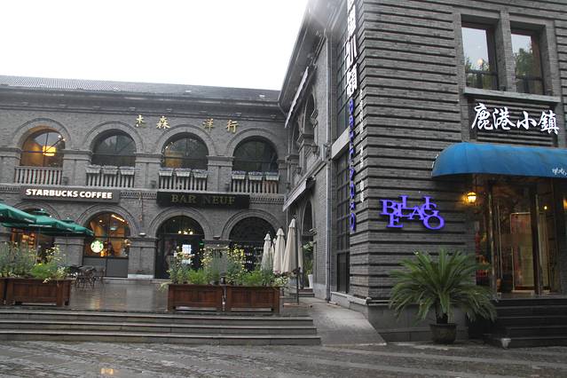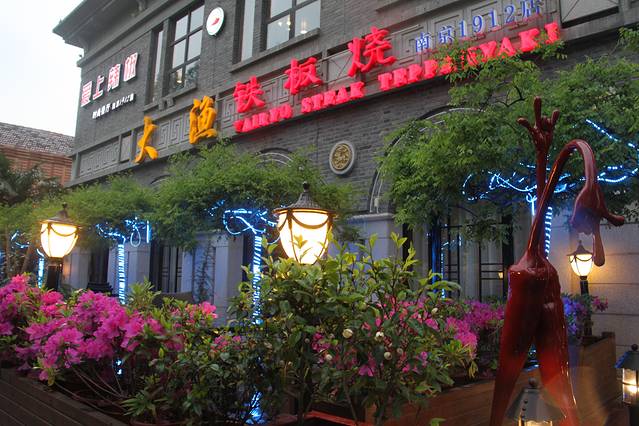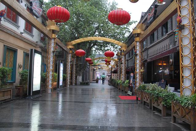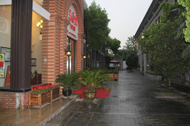 这是个类似上海新天地、北京三里屯的玩艺。很多仿民国的建筑,融入了现代元素。但仿得不成功,它呈L形布局,人气不旺。或许是我到访的这天偏偏不巧的缘故。