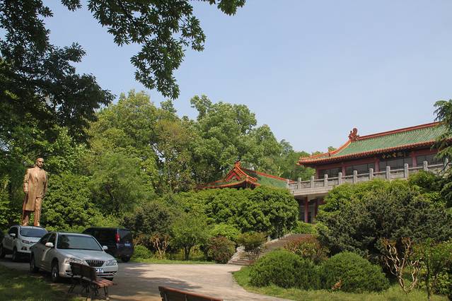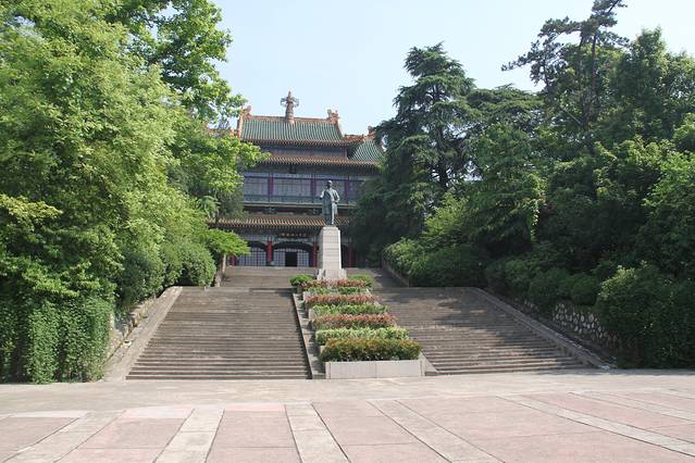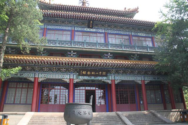 在一片林海中掩映着一座仿清喇嘛庙的古典建筑,它依山而建,气势恢宏,这里就是保存和展示一代伟人史迹的博物馆--孙中山纪念馆。