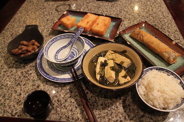 一个人也吃不了多少,就点了三个小菜、一两黄酒。真难吃。超级失望。莫非我人品问题?邻桌的单身美女点了3块煎糕,只吃了半块,剩下的全端给了我。我夹起未动的一块,妈啊,太硬了,硬得像石头。