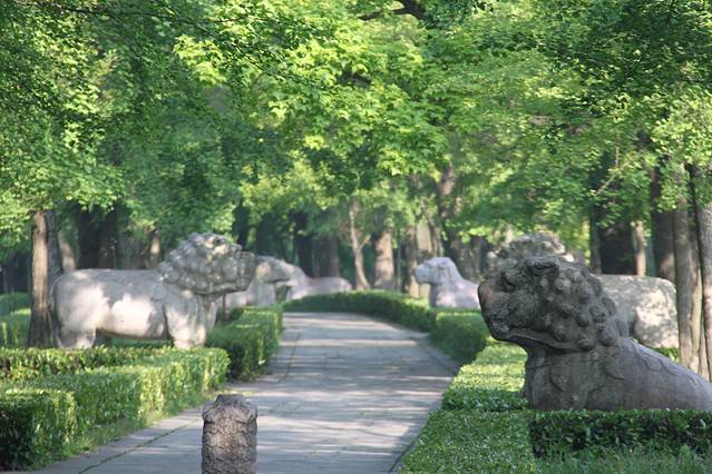 孝陵神道一改中国传统帝陵神道笔直的格局,蜿蜒曲折,两边分别排列着石兽,一派威严,历史的痕迹全在这些石像上。