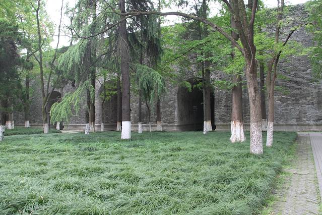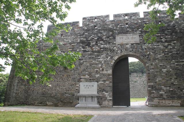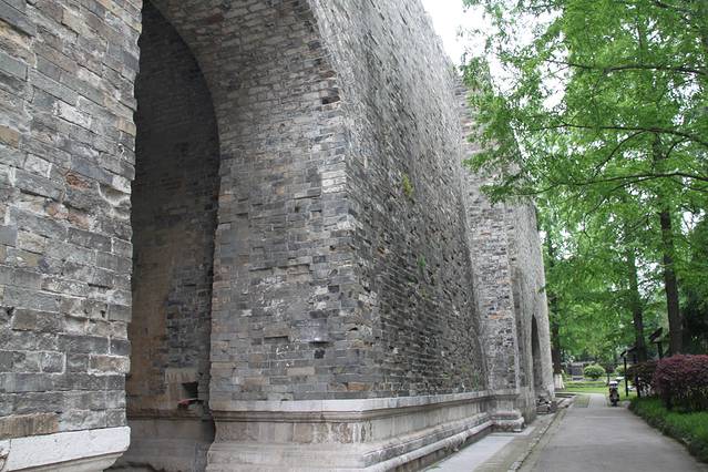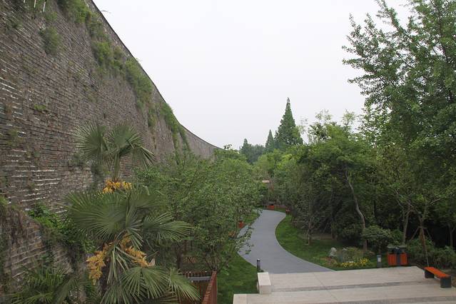 上到城墙上可以一览玄武湖的美景,值得一去。但我只在城墙下观望了一阵儿,毕竟登上城墙要留下些银子。