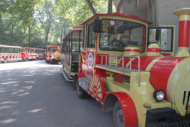 观光小火车穿梭于中山陵、灵古寺等地之间,免除徒步之役。