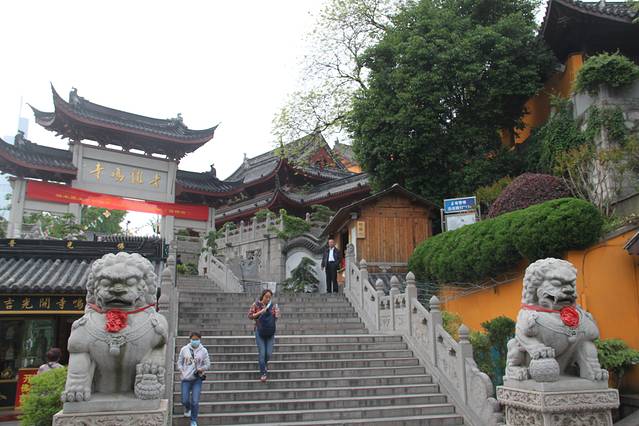 寺庙不算大,靠近玄武湖景区,依山而建。登高可以看到明城墙、玄武湖,翠色浮空,山清水秀。
