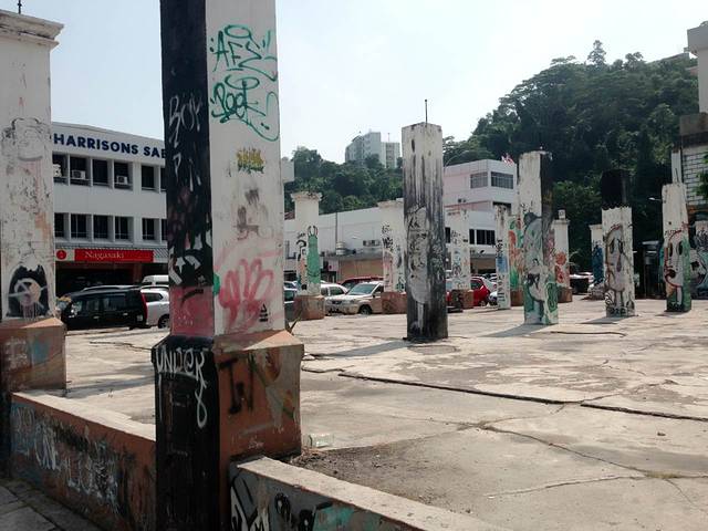 早上市区闲逛,经过的涂鸦墙,像烂尾楼