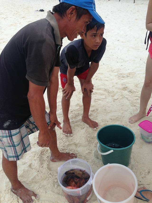 晚餐跟这对父子买了,Four鲍鱼,Three老虎斑,Two龙虾,230马币,相对于国内,很便宜,可是后来岛上的Raffi 跟我们说买贵了,只能呵呵了······